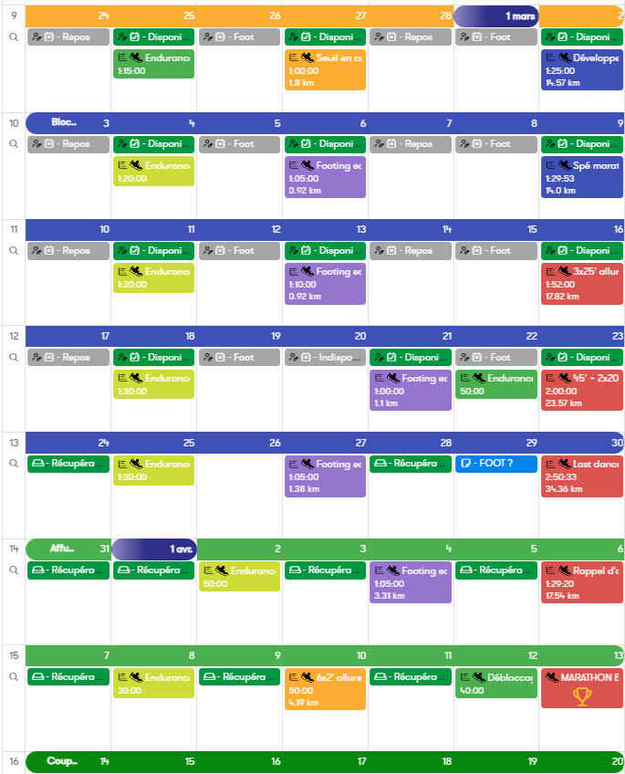 En tant que kinésithérapeute, coach sportif et coureur expérimenté, je vous accompagne tout au long de votre préparation avec une approche axée sur la prévention des blessures et la régularité à long terme, ainsi que sur une progression orientée vers la performance.Le programme peut débuter à partir de janvier 2026, avec une flexibilité selon votre profil, vos disponibilités et votre expérience en course à pied.Votre plan d’entraînement et votre suivi seront gérés via l’application de coaching Nolio, vous permettant d'accéder à votre plan d’entraînement personnalisé à tout moment et partager facilement vos retours et sensations d’entraînement.En complément, vous bénéficierez d’une communication directe et illimitée via WhatsApp, garantissant des ajustements rapides, des réponses à vos questions et un accompagnement continu tout au long du programme.Le tarif est de 349 € pour le programme de suivi de 5 mois. Prêt(e) à vous lancer ? Contactez-moi !